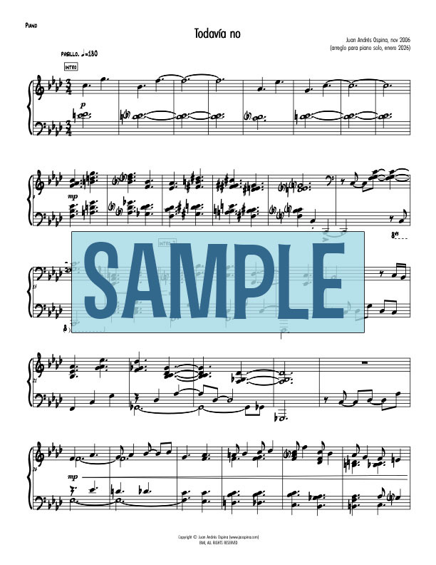 Un arreglo original inédito para piano solo de “Todavía No” (Juan Andrés Ospina).